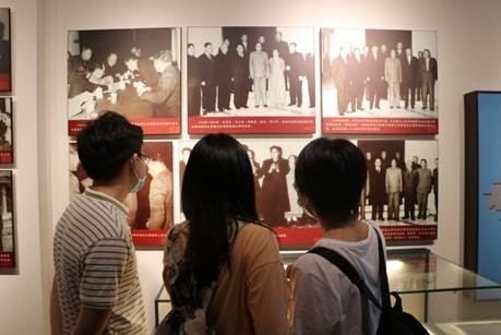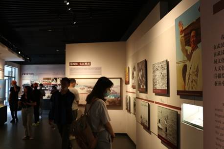 故居展示了毛泽东的部分亲友画像,还有在武汉领导农民运动的历史资料,他针对党内外对农民革命斗争的责难,亲自在农村考察,撰写了影响中国革命的《湖南农民运动考察报告》。展厅还有后来新中国成立后,毛主席在武汉考察的影像资料,在参观过程中,成员们积极进行交流和讨论,感慨伟人的英雄革命精神,能在当时的社会背景下走不同于寻常的道路,心中有光,满怀斗志向未至之境探索的精神,一张张泛黄的老照片给同学们留下了深刻印象。
