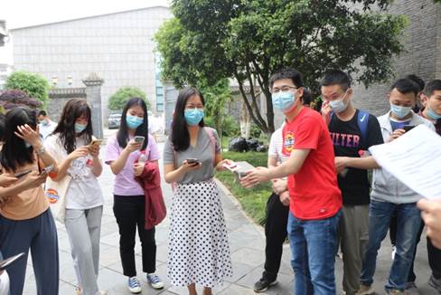 参观完最后一站,同志们齐聚在中共五大会址内,由邓文浩同志提问有关纪念馆的党史题,同志们积极作答,参会人员进行回答并接受奖品。