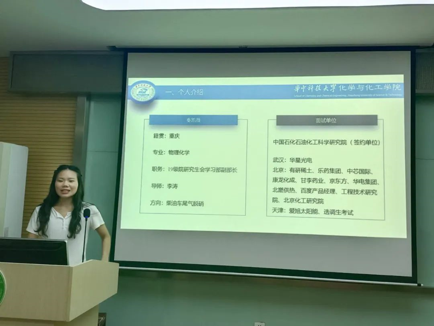物理化学专业2019级硕士毕业生朱金莲则剖析了毕业生求职时面临的主要困难,并针对性给出了个人的建议。她还结合自身签约华为的经历,对华为的笔试与面试流程及薪资待遇方面做了分享。