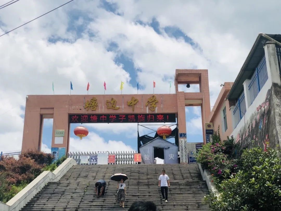 在老师和校领导驱车带领下,我们一行人抵达了塘边中公司门。在聊天中,我们深知塘边教育亟需新能量,绝不可辜负领导们对我们的期待。密布的白云映衬下,校门显得更加恢弘壮观。