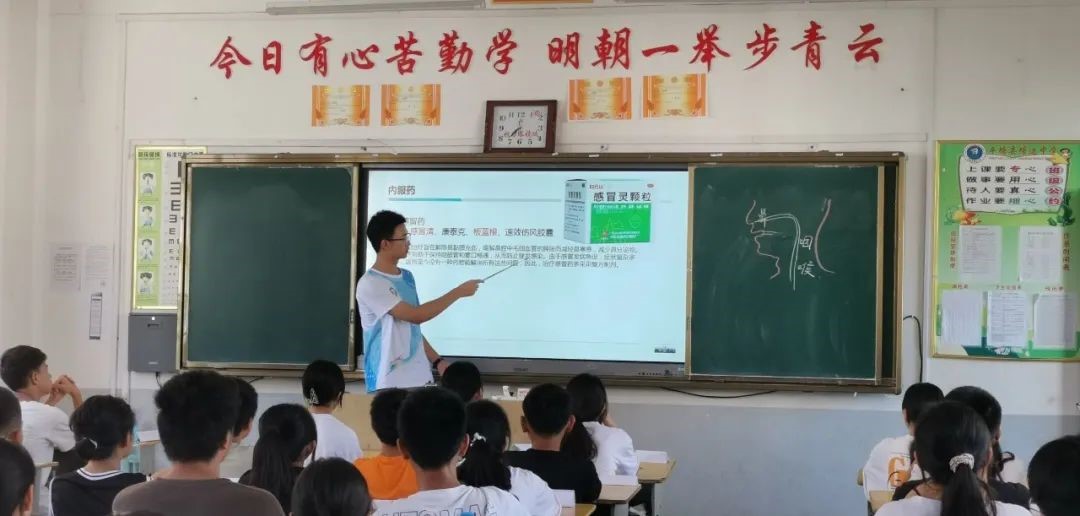 第二节课是苏承柯同学准备的医疗药物简释课程,他从多个角度,多个类别,详尽地介绍了家庭常用药品的使用,包括注意事项、使用方法、对应症状等,生动而实用。