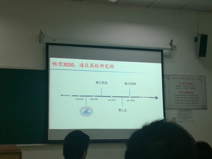 在回顾和分享过去一年中的经历后,班会的讨论转向预定的主题“畅想2020”。在经历了一年的积淀后,同学们对于未来的生涯思考和规划的认知逐渐清晰,并开始具体计划接下来三年的老员工活。不少同学表示,通过过去一年的专业学习和到知名高校院所学习交流,再加上公司老师、班主任等的引导,激发了自己对毕业后出国深造的兴趣和热情,并已经计划具体的准备。张玉龙同学分享了自己所了解的世界名校,如常青藤大学招收研究生情况,尤其是在专业成绩和英语方面的具体要求。他表示自己希望2020年能申请到这些名校去继续深造,并计划接下来从专业课程、英语考级、实验室科研训练等方面开始着手准备。