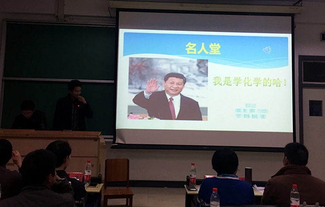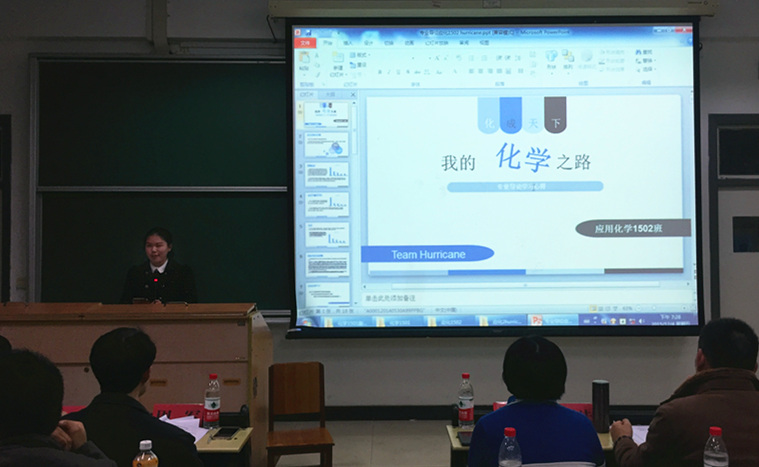 在一开始的答辩环节中,同学们答辩形式丰富多彩、创意无限,既有传统的PPT展示,也有采访视频,让人耳目一新的是化工1502班你们全不队队以新闻播报的形式为大家生动的阐述了他们对于化学的认识以及未来的规划。